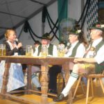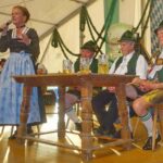Zum ersten Bühnenabschnitt spielten die seit 20 Jahren bestehende Holzanger-Musi und die ebenfalls heimische Westenbach-Musi auf, für den Gesang sorgten die Rimstinger Sänger. Deren Entstehung und Entwicklung war auch Bestandteil des Gesprächs der Moderatorin Regina Wallner mit Schorsch Heindl, Konrad Feichtner und Alois Frank. Die beiden Letzteren gehörten auch den ersten Rimstinger Sängern an, deren Nachfolger widmeten ihnen eine Wiederbelebung einer Aufnahme aus dem Jahr 1982 vom Gasthof Strasser mit dem Lied „Hab a Dinai wia Milli und Bluat“ mitsamt einem raren Jodler. Der Rückblick in die Chronik beinhaltete auch die Bezahlung der ersten Vereinsfahne in Inflationszeiten, als nach der Abgabe von Geldscheinen in zwei Rücksäcken für die Überbringer nur noch Geld für Semmeln als Brotzeit übrigblieb. Plattlerproben mit damals verbundenen Kraft- und Geschicklichkeitsspielen, Seefeste –unter anderem beim ersten 1969 mit Bier-Defiziten- sowie 55malige Vereinsausflüge waren weitere Themen und Teil des Dialogs auf der Bühne und machten neugierig auf die Festschrift.