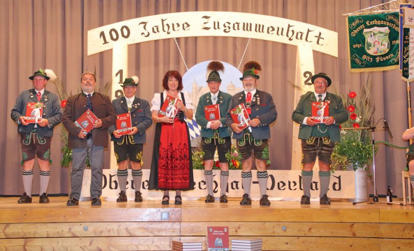„100 Jahre Oberer Lechgau-Verband“ zu feiern, bedeutet Gaugeschichte und Gaugeschehen zu betrachten, so 2. Gauvorstand Alfred Sieber, der als Buchausschussvorsitzender vor über fünf Jahren die Idee dafür hatte und danach die Anfertigung der Gauchronik umsetzte. Seit 2015 fanden mit den Buchausschussmitgliedern Monika Grieser, Josef Hengge, Claudia Klopfer, Marlene Köpf, Walter Sirch und Monika Zink 15 Sitzungen statt. Ein besonderer Dank an Claudia Klopfer, die die Verbindung zwischen Gau und Vereinen sowie den Buchpaten herstellte. Nun wird das gelungene Gemeinschaftswerk mit 1037 Bildern und 400 Seiten als geschichtliches Nachschlagewerk als Ergänzung der ersten Chronik vorgestellt, die über einen QR-Code Teil davon ist. Diese Chronik zum 100. Geburtstag war eine große Aufgabe für den Buchausschuss und eine Verpflichtung für frühere Generationen die Geschichte in Schrift und Bild festzuhalten und an die nächste Generation weiterzugeben. „Wer fest stehen will, muss feste Werte haben, das ist wichtig im Leben – Zeiten des Wandelns bergen auch Gefahren, gewisse Dinge zu vergessen.“ Zahlen, Ereignisse, Fakten des Gaues, der Gauvereine, aus deren Orten – als umfassendes Gesamtwerk zeigt dieses Buch. Ein Meilenstein in Wort und Bild für künftige Generationen voller Erinnerungen. Mit Stolz blicken wir auf die Geschichte und einen gelungenen Beitrag zur Pflege und den Erhalt der heimatlichen Werte. Danke allen 77 Helferinnen und Helfern für die Mitarbeit an der Chronik, ganz besonders der Setzerin Marion Niggl, den Lektoren Alfred Frei, Martin Klopfer und Herbert Sieber, den Endlektoren, Margarete Barnsteiner, Sonja Sirch, Hansjörg Lederer und Helga Frei sowie den Fotografen Wilhelm Franke und Alfred Michel, dem Chiemgau-Druck, den Sachgebietsleitern, Vorständen und Schriftführern sowie allen Sponsoren für die finanzielle und materielle Unterstützung.