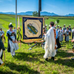 Höhepunkt des Jubiläums „100 Jahre Trachtenverein Bachecker Hirnsberg-Pietzing“ waren ein Sonntags-Gottesdienst auf freiem Felde, die dabei integrierte Weihe einer neuen Fahne sowie ein Festzug zur gemeinsamen Einkehr im Festzelt bei Moosen.