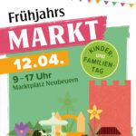 Der Neubeurer Frühjahrsmarkt lädt am Sonntag, 12. April 2026 von 9-17 Uhr wieder zum Bummeln, Entdecken und Verweilen ein und präsentiert sich dabei mit einem erweiterten Konzept. Unter dem Motto „Kind & Familie“ wird der Markt noch lebendiger und bunter. Familien dürfen sich auf ein abwechslungsreiches Programm freuen, das die Kinder zum Mitmachen einlädt und gleichzeitig den Eltern die Möglichkeit gibt, den Marktbesuch entspannt zu genießen.