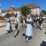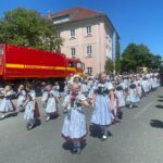 Die Priener Trachtler mit ihrer großen Schar an jungen und älteren Mitglieder, Blasmusikanten, Nachbars- und Gastvereine sowie Fahnenabordnungen und Festwägen prägten das Bild des feierlichen Festzuges bei hochsommerlichem Wetter.