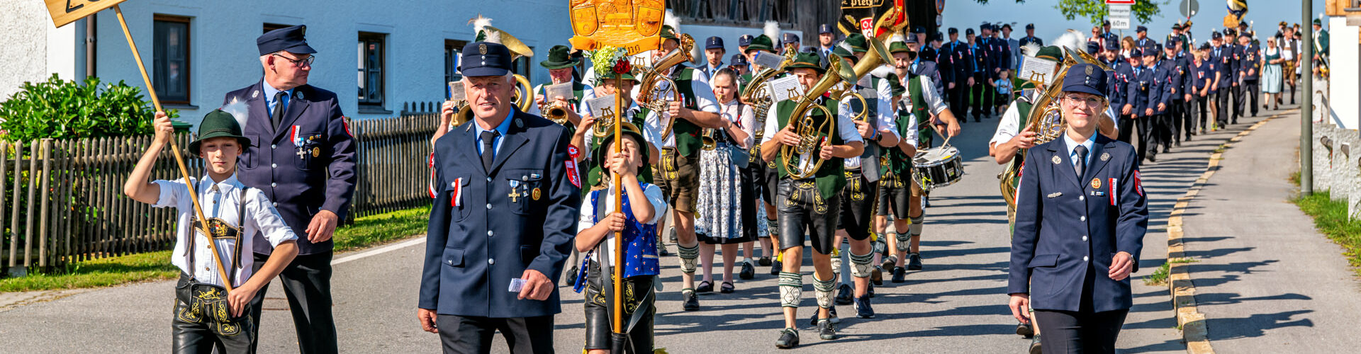 Am Sonntag starteten die Jubiläumsfeierlichkeiten der Freiwilligen Feuerwehr Pietzing mit einem festlichen Kirchenzug vom Festzelt hinauf zum malerisch gelegenen Kirchplatz vor Moosen am Simssee. Bei strahlendem Sonnenschein zogen Feuerwehrleute in Uniform, Musikkapellen und Fahnenabordnungen begleitet von traditioneller Blasmusik durch den Ort.
