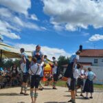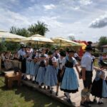 Sehr zahlreich und in bester Stimmung kamen die Gäste aus nah und fern und suchten sich unter den Obstbäumen oder in den beiden neu angeschafften Bierzelten ein schattiges Plätzchen. Der Durst war groß und die knusprigen Hendl und das saftige Grillfleisch schmeckten vorzüglich. Von Beginn an war es eine Wohltat den schönen Klängen der Musikkapelle Griesstätt zu lauschen, die dann auch gleich die Kinder- und Jugendgruppe des Trachtenvereins beim „Auftanz“ musikalisch begleiteten. Da ging einem schon das Herz auf, wenn man die 24 Paare sah und in ihre strahlenden Augen blickte. Und es schlossen sich noch viele Tänze und Plattler der Kinder und Jugend und dann der Aktivengruppe an. Immer wieder fein begleitet von der Musikkapelle sowie vom Ziacherer, dem Öttl Franz. Den Abschluss und einen weiteren Höhepunkt bildete der Kronentanz der Aktiven. A wunderscheens Bild! So genossen alle den Tag und ließen sich auch den Kaffee und die vielen selbstgemachten Kuchen noch gut schmecken. Und die Kinder hüpften begeistert in der Hüpfburg umeinander, wie immer hervorragend betreut von den Gartnerbuam.