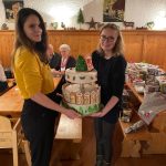 Die Azubis der Konditorei sorgten für die Nachspeise. Das Bild zeigt die Azubis Sylvia und Elisabeth mit einer weihnachtlichen Torte.