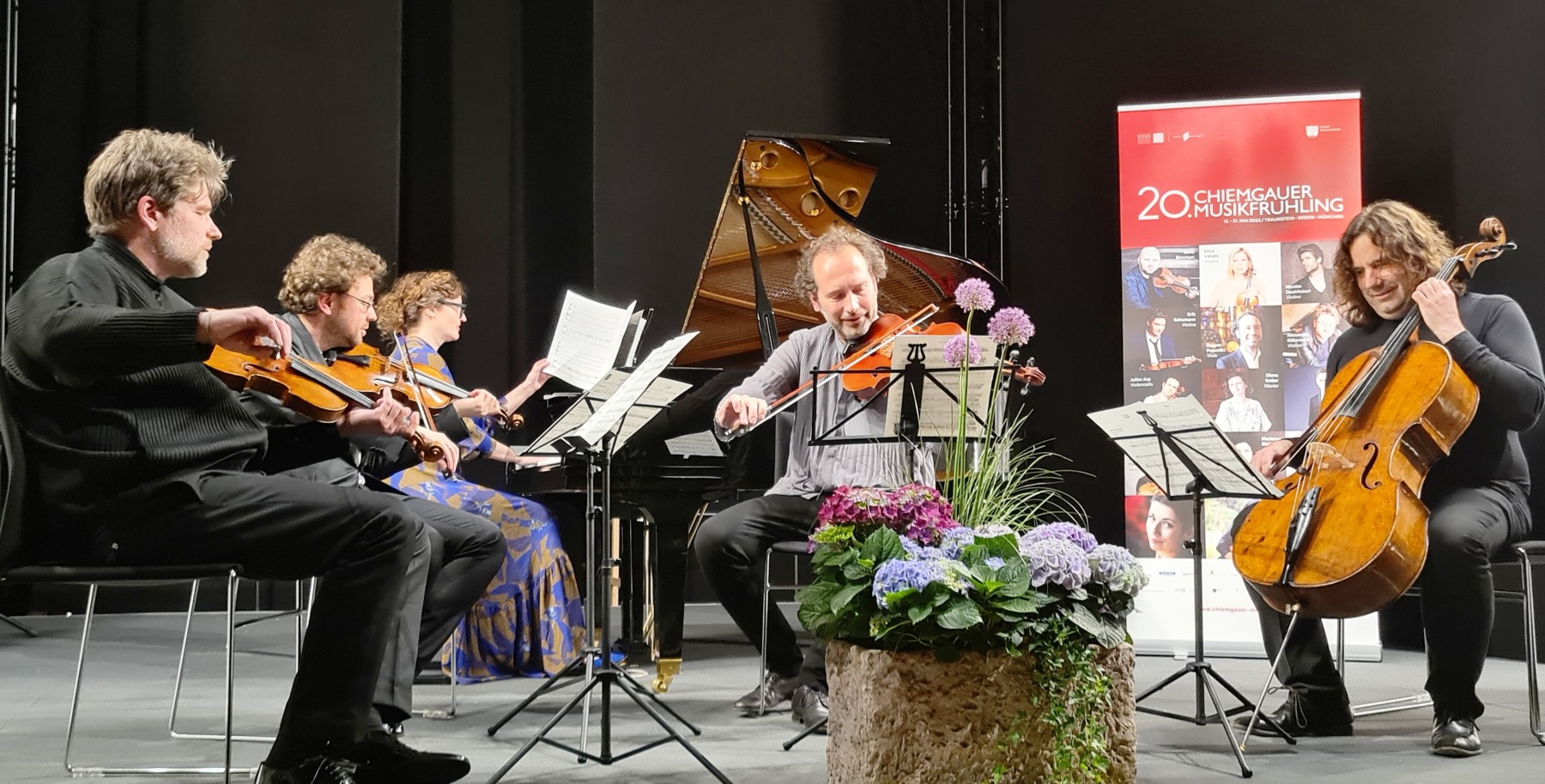 Archivbild vom Eröffnungskonzert des 20. Chiemgauer Musikfrühlings in der Klosterkirche mit Diana Ketler am Klavier, Razvan Popovici, Viola, von links Violinen Nicolas Dautricourt und Alexander Sitkovetsky sowie Justus Grimm am Viloncello. Foto: Giesen