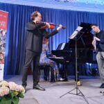 Auf diese Weise glücklich eingestimmt vernahm das begeisterte Publikum die ebenso romantisch anmutende Musik von Antonin Dvoraks (1841 bis 1901) „Waldesruhe“ aus seinem Zyklus „Aus dem Böhmerwald“ opus 68 für Violoncello und Klavier und vier romantische Stücke für Violine und Klavier, opus75, ebenso von Dvorak, Diana Ketler am Klavier und der junge, in St. Petersburg geborene Aylen Pritchin auf der Geige.Vor der Pause spielten Ketler und Valentin Radutiu am Cello noch „Kol Nidrei“ von Max Bruch, opus 47. Das Stück ist eigentlich für Orchester und Cello geschrieben, so dass das Klavier hier gleichsam das Orchester ersetzte. Der Titel „Kol nidrei“ („alle Gelübde“) ist ein Gebetsspruch, der vor dem Abendgebet des Versöhnungstages (Jom Kippur) in jüdischen Gemeinden gesprochen wird. Dem ersten Teil liegt der traditionelle Bußgesang des Jom-Kippur-Fests zugrunde. Im zweiten Teil wechseln sich die Moll- und Durtonart elegisch ab.