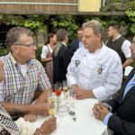 Eine große Zahl von Kolleginnen und Kollegen der großen Köchefamilie, sowie Sponsoren und Freunde der vergangenen 50 Jahre konnte Vorsitzender Max Antholzner im Garten des Landgasthofes Happinger Hof zum Start der Jubiläumsfeier seines rund hundert Mitglieder starken Vereins begrüßen. Für manche gab es ein frohes Wiedersehen, denn die beruflichen Wege haben einige über die Grenzen Rosenheims bayernweit hinausgeführt. Herzlich willkommen dazu die Freunde aus Bad Kissingen, des Landesverbandes Bayern, Südtirol und Österreich. Den Flintsbacher Alphornbläsern wurde kräftig applaudiert, ehe sich die Versammlung im Saal einfand, speziell zu den Grußworten von Landrat Otto Lederer, Theresa Albrecht, Kreisvorsitzenden der Dehoga Bayern und dem Landtagsabgeordneten Sebastian Friesinger. Sie alle betonten die fachliche Qualität und Leistung in Bezug auf die Pflege und Förderung der Kochkunst, der Kollegialität und Geselligkeit, sowie dem unschätzbaren Einsatz bei der Unterstützung der jungen Köchinnen und Köche. Unbestritten prägt die Gastlichkeit in Harmonie mit einheimischer Kochkunst den Ruf unseres Chiemgau-Alpenlandes weit über die Region hinaus.