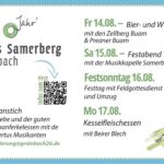 Das Festprogramm im Festzelt von Grainbach sieht am Donnerstag, 13. August den Bieranstich, am Freitag, 14. August ein Bier- und Weinfest, am Samstag, 15. August ein nachmittägliches Kindertheater und einen Festabend, am Sonntag, 16. August einen Gottesdienst mit Festzug und am Montag, 17. August ein Kesselfleischessen vor.