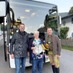 Beim Aufbruch zum Jubiläumsausflug zur Waldhäuslalm überraschten sie Erster Bürgermeister Simon Frank und Tourismuschef Herbert Reiter, um Glückwünsche zum Jubiläum zu überbringen.
