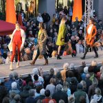 An vielen Stellen in der Innenstadt wird „Lámpara gigante“, eine StelzenPerformance von RigoL & tOrf, die Besucher in luftiger Höhe begeistern.