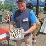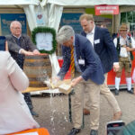 Professor Beckhove übernahm dann auch den Fassanstich. Mit gekonnten zwei Schlägen hieß es „O’zapft is“. Der edle Gestensaft wurde dieses Jahr von den Regensburger Brauereien Kneitinger und Bischofshof (Weltenburger) angeliefert. Der traditionelle Weißwurstfrühschoppen am ersten Festtag war somit eröffnet. Dazu gab es weitere regionale Spezialitäten, wie Bratwürste aus der historischen Regensburger Wurstküche, Knackersemmeln, Obatzda, Brezen und einiges mehr. Mit zünftiger bayerischer Blasmusik von den Labertaler Musikanten war dann eine stimmungsvolle Biergartenatmosphäre gegeben.