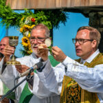 Den Gottesdienst feierte Pfarrer Michael Brüderl aus dem Pfarrverband Tacherting (mit den Pfarreien Tacherting, Emertsham und Peterskirchen) zusammen mit Dekan Michael Manhardt aus Miesbach, mit Diakon Konrad Maier vom PV Tacherting sowie mit Pater Abraham aus Indien, der derzeit Urlaubsvertretung im PV Tacherting macht.