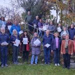 Für Ende Oktober hat Markus Breier, Kreisfachberater für Gartenkultur und Landespflege am Landratsamt Traunstein, im Rahmen einer kleinen Feierstunde zur Verleihung der Auszeichnung nach Nöstlbach bei Pittenhart, in den Garten von Maria und Albert Schuster, eingeladen. In ihren Grußworten betonte Birgit Furtner, die Vorsitzende des Kreisverbandes Traunstein, dass ein Naturgarten wesentlich mehr ist als ein Stück Land, es sei ein lebendiger Ort an dem Menschen und Natur im Einklang sind. Neben Obst und Gemüse das wächst und gedeiht, finden viele Insekten, Vögel und viele kleine Tiere finden dort eine Heimat. Als Rückzugsräume für eine bunte Vielfalt an Leben, von der Blumenwiese bis hin zum Todholzhaufen, bezeichnet Furtner die liebevoll geschaffenen Erholungsräume. Die Auszeichnung „Naturgarten“ verdienen die, die mit offenen Augen und mit Liebe zur Natur gärtnern und einen wertvollen Beitrag zum Erhalt der Artenvielfalt und zu einem gesunden und nachhaltigen Miteinander leisten. Viel Liebe und Zeit steckt in all den Gärten und wie es die Frau eines Hobbygärtners humorvoll ausdrückt, sei es der Gemüsegarten, der in ihrer Ehe hin und wieder Streitigkeiten mit sich bringt. Doch wenn es um die Wahl der Gemüsepflanzen geht, gibt sie als Hausfrau und Köchin den Ton an und bestimmt welche Gemüse zu welcher Zeit in die Erde kommen. Furtner wünscht allen in ihren Gärten unzählige Glückmomente beim Ernten und Entdecken in ihren Gärten. Alles besondere Gärten, wie Markus Breier, eingangs seiner Grußworte erwähnt und lobt die Vielfalt in den Gartengestaltungen bei denen aber auch die grundlegenden Kriterien, wie kein mineralischer Dünger, kein Torf, der Verzicht auf chemische Pflanzenschutzmittel und die Förderung der Artenvielfalt, als Gemeinsamkeit steht. Bei wunderbarer Herbststimmungen beglückwünschte Markus Breier alle Preisträger. Dieses Jahr waren sehr viele Gärten zur Prämierung gemeldet, angefangen von einem erweiterten Garten, in einem teils fluchtartigen Gelände, einen verwunschenen Rosengarten mit unzähligen alten Rosensorten und Nistkästen für Vögel, Gemüsegärten, die die Liebe für eigene Versorgung mit Gemüse widerspiegelten, wie auch einen Stadtgarten, bei dem auf engsten Raum eine Vielfalt von Gemüse und Blumen geboten war. Wie Petra Seewald abschließend sagte, „Wer einen Garten hat lebt schon im Paradies“. Diesen Worten hat sich Maria Wegerer angeschlossen und bedankt sich für die Offenheit Aller, ihre Gärten zu besichtigen. Mit der Auszeichnung geht, nach ihren Worten auch eine gewisse Verpflichtung einher und soll auch Ansporn sein, gerade dieses Wissen, den großartigen Schatz mit der Natur zu gärtnern, auch weiter zu geben. Wegerer weiß auch um ein altes Sprichwort sagt: „Wenn du ein glückliches Leben haben willst, dann leg dir einen Garten an“.
