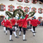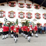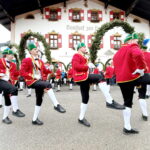 Im Bergsteigerdorf Sachrang wurde im Ortskern getanzt: Die Kirchheimer Schäfflertanzgruppe war auf Einladung der Gemeinde und der Tourist Info erneut nach sieben Jahren wieder zu Gast. Zahlreiche Bürger und Gäste waren im Ortskern mit dabei, um diesen traditionsreichen Tanz anzuschauen