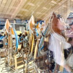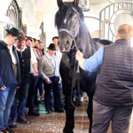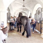 Nach dieser aufschlussreichen Führung und Verkostung ging es dann weiter mit einer Besichtigung der Stallungen des Augustiner Prachtgespann, das in Freiham beheimatet ist. Diese wurde dann durch Florian Schelle jun. geführt, der diese Pferde auch betreut und früher beherbergte. Die großen Boxen ließen die mächtigen Percheron Rappen im ersten Augenblick gar nicht so groß wirken, bis dann einer der vier Rappen auf die Stallgasse geführt wurde. Da waren die Augen unserer Kaltblutzüchter dann doch etwas erstaunt. Wir bekamen sehr interessante Einblicke in den Stallalltag der Pferde, konnten Fragen zur Fütterung und der Einstreu. Florian Schelle und die zuständige Stallcrew standen uns rede und Antwort sodass wir viele Informationen bekamen. Danach ging es weiter in den Anbau, wo die ganzen Bierwagen und Kutschen aufbewahrt werden. Aber das größte Highlight war hier sicher die ganzen Prachtgeschirre der Augustiner Brauerei zu sehen die in einem eigens gebauten Glasraum zur Schau gestellt sind.