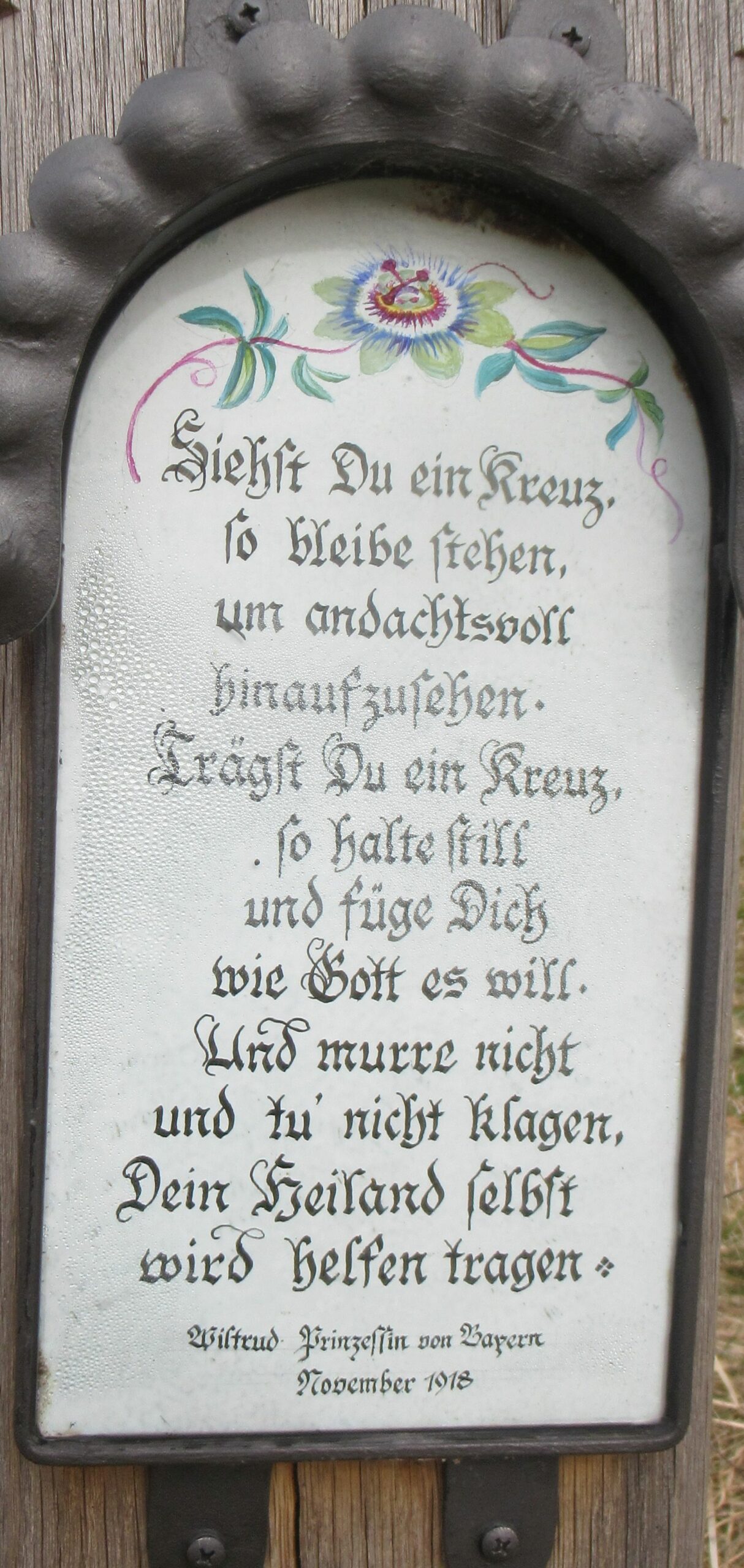 Gedenktafel von Prinzessin von Bayern an Wegkreuz
