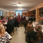 Nach einem Rückblick auf die Aktivitäten des vergangenen Jahres, gemeinsames Singen der traditionellen Weihnachtslieder, begleitet von den Steirer-Musikanten des Vereins, Monika und Felix Lämmel, zusammen mit Waltraud Lehman, an der Zither. Bevor es zum Buffet mit den Gänsekeulen ging, dann noch adventliche Musikbeiträge vom Hackbrett Consort Kleinmachnow, mit Irmgart Mann, Denise Pinta, Ines von Nolting und dem Vorsitzenden des Vereins. Ein Highlight des Abends war der Kleinmachnower Dreigesang, mit Irmgart Mann, Andrea Reinfeld, Johanna Einspanier und Waltraud Kruck. Für den Einsatz des Hüttenteams hinter der Theke, Patricia, Matthias, Detlef und Andreas ein herzliches „Vergelt’s Gott“. Es war eine gelungene bayerische Weihnachtsfeier in der Almhütte der Bayern in Berlin, zur Pflege der bayerischen Traditionen in der Bundeshauptstadt.