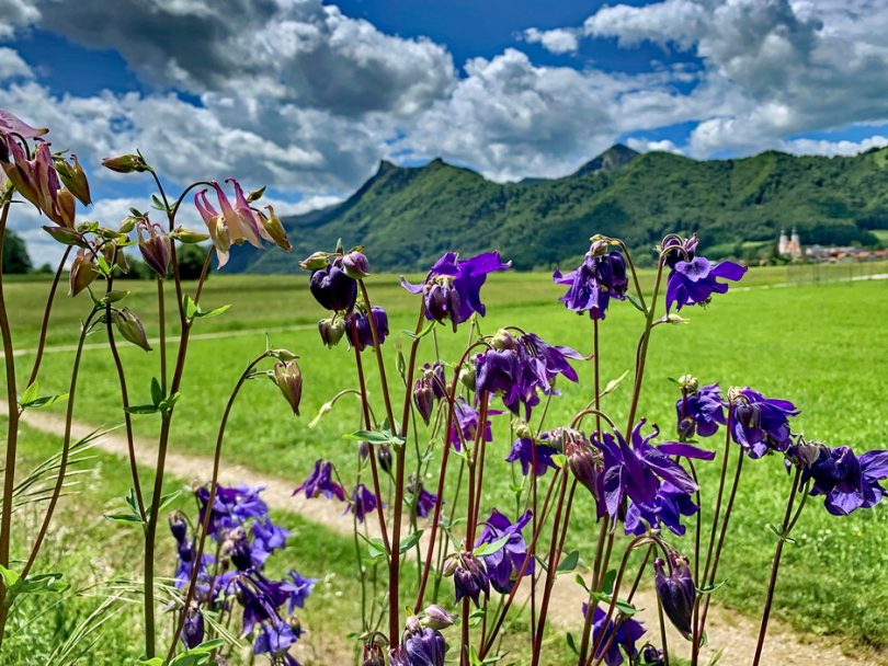 In der hektischen Zeit unserer Gesellschaft passiert es oft, dass man Gedankenverloren unterwegs ist und dabei den Blick auf das Wesentliche und Schöne verliert. Sich Zeit nehmen und Bewusst die Einzigartigkeit der Natur wahrnehmen, schenkt nicht nur Kraft, sondern auch besondere Augenblicke. Ein Augenschmaus bietet sich derzeit auch direkt am Wegesrand bei Aschau i.Chiemgau. Prägend durch die markante und zauberhafte Blütenpracht, stechen einen die Akeleien regelrecht ins Auge. Die Akeleien bilden eine Pflanzengattung in der Familie der Hahnenfußgewächse. Also es lohnt sich allemal auf den Weg zu machen und seine Blicke dabei schweifen zu lassen.