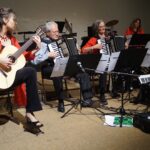 Es folgten Werke aus der Filmmusik, wie „Be Our Guest“ aus „The Beauty and the Beast“ von Alan Menken, schwungvoll dirigiert von Claudia Kneidl, außerdem „Under the Sea“ aus „The Little Mermaid“ mit Klängen, die an ein Xylophon erinnerten. Bei „Rhythmischen Impressionen“, wo der „Intercity“ von Adolf Götz mit Saxofonklang vom Akkordeon durch verschiedene Genres bis hin zum Walzer rauscht, oder auch beim Disco Samba „For Once in My Life“ und „I Go to Rio“ im Clave-Rhythmus, ebenso wie beim Rock-Klassiker „MacArthur Park“ von Jimmy Webb und dem Foxtrott „Goody Goody“ mit Bezug zu Benni Goodman zeigten die Akkordeonisten präzises Zusammenspiel und eine feine Klangkultur.