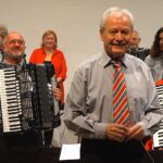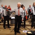 Dies war ganz besonders auch bei „Bohemian Rhapsody“ von Freddie Mercury zu erleben – ein ganz besonderes Klangerlebnis mit Erinnerungswert. Der krönende Abschluss war das Medley-Arrangement mehrerer Chansons von Udo Jürgens im Big-Band-Sound, arrangiert von Orchestermitglied Gerhard Schmidt. Mit all diesen Stücken schuf das Akkordeonorchester bezaubernde Stimmungen, in die die Besucher eintauchen durften. Zum Schluss wurde der ehemalige Kulturreferent und zweiter Bürgermeister von Freilassing Peter Geigl zum Dank für seine jahrelange Unterstützung mit einem Bild-Präsent geehrt und Walter Gruber verabschiedete sich mit dem bezeichnenden Wunsch: „Begeben Sie sich in eine ungewisse Zeit mit Mut und Zuversicht“.
