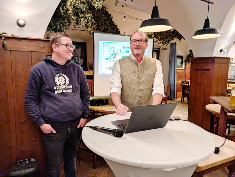 Bericht und Foto: Peter Koch – Die beiden Festwirte Rudi Zeif (rechts) und Valentin Thanbichler präsentierten die Neuerungen beim Frühlingsfest bei der Bierprobe im Wochinger-Brauhaus