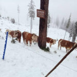 Wegen des unerwartet starken Schneefalls in den Berchtesgadener Bergen musste manches Almvieh früher als geplant seine Almweiden verlassen. So wurden die Kälber von der Stubenalm und Grubenalm mit Hilfe von Treibern und Treiberinnen vorzeitig ins Tal und in die heimischen Ställe in Bischofswiesen zurückgeholt, ein weiterer Aufenthalt am Berg war nicht mehr möglich.