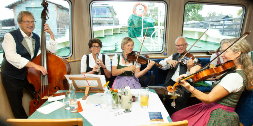 Aus allen Teilen Oberbayerns bis tief ins Niederbayerische hinein, sowie aus dem Österreichischen Bundesland Salzburg kamen diesmal die Sänger:innen und Musikant:innen, die auf dem „Volksmusikschiff Edeltraud“ zirka 250 Zuhörer:innen mit Volksliedern und dazu passenden Weisen erfreuten.