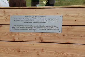 Auf einer Tafel am Bankerl steht eine Widmung „Mit dieser Bank bedankt sich Luise Schreiner, Tochter vom Lenz bei Paul Moosmüller, (dem Großvater des jetzigen Almbauers) der ihr und ihrer Familie in den letzten Jahren des Zweiten Weltkriegs auf der Gori-Alm Unterschlupf gewährt hat. Der Vater, der das Gedankengut des nationalsozialistischen Regimes nicht teilte, wurde verfolgt und galt als fahnenflüchtig. Aus Nächstenliebe riskierte Paul Moosmüller sein eigenes Leben und das seiner Familie, indem er Lenz und seiner Familie Sicherheit bot“.