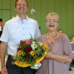 Bürgermeister Simon Frank bedankte sich im Namen der Gemeinde Aschau für die langjährige Arbeit zum Wohle der Kinder und überreichte der scheidenden Schulleiterin einen Blumenstrauß.