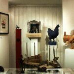 Norbert Däuber “spricht die Sprache der Bildhauerei, die Sprache von Form Material Bearbeitung, Proportion“, drückt es der  Bildhauer Carsten Lewerentz, der Betreiber des Atelierfensters aus, der natürlich so wie sehr viele Künstler-Kollegen in der Region ebenfalls die Schnitzschule besuchte. Der Blick ins Atelierfenster zeigt durchweg scheinbar gegenständliche Skulpturen, wobei Däubers Hauptinteresse immer Mensch und Tier gilt.  Gegenständlich – sofort geben sich die verschiedenen Skulpturen und Plastiken zu erkennen als Hahn, Esel, Schaf oder Mann, Frau. Nur die Zusammenstellung gibt Rätsel auf: Warum reitet ein nackter Mann auf einem Esel? Dahinter verbirgt sich Däubers humorvoller Ernst im Blick auf die Welt. Ist das ein Witz oder vielleicht eine Metapher zu den Reiterstandbildern der Kunstgeschichte? So fängt die Bildsprache des Bildhauers mit dem Betrachter mit Fragen und Hinterfragen an.