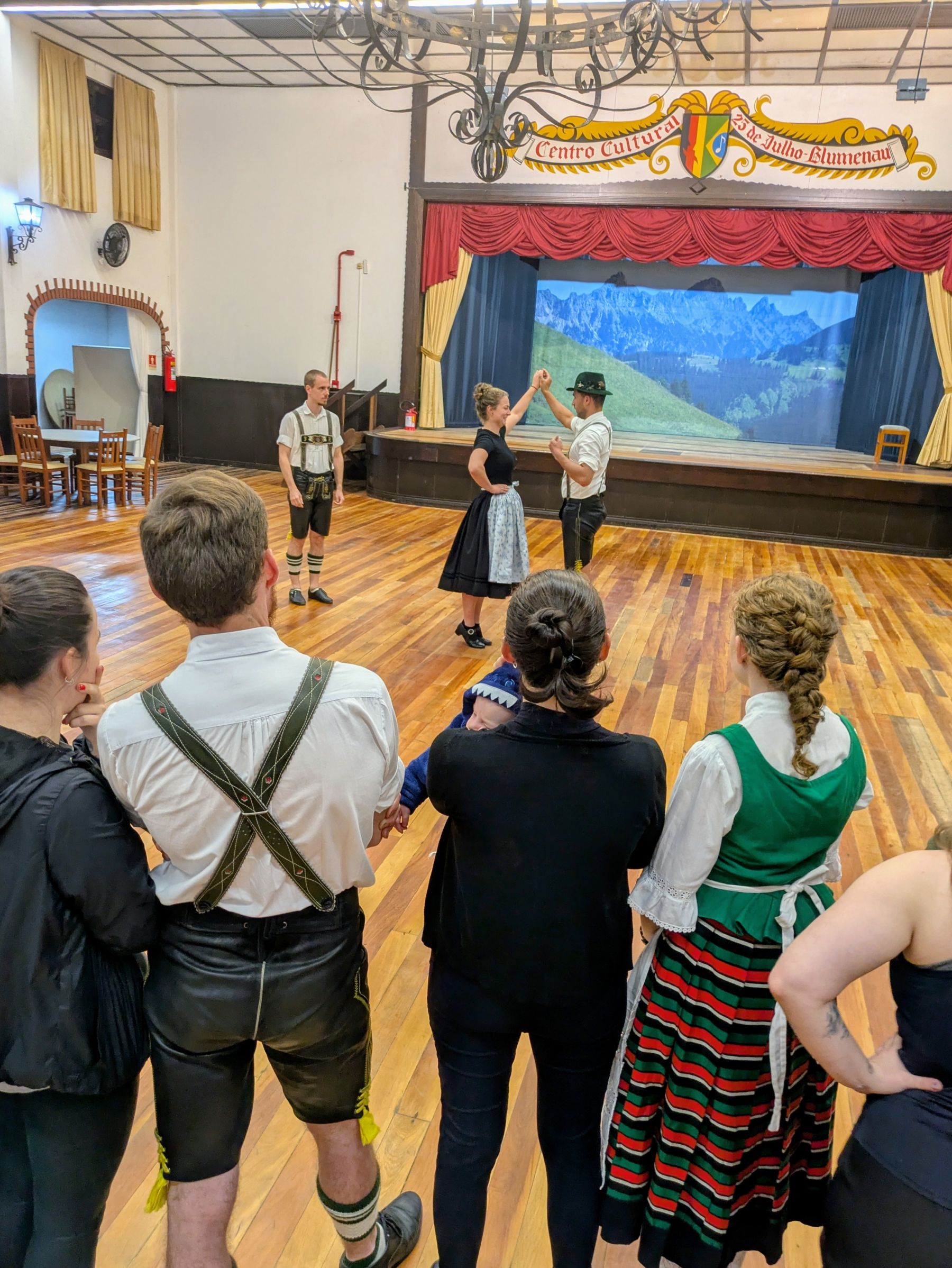 Großes Interesse bestand seitens der Blumenauer Volkstanzgruppe beim Dirndldrehn- und Walzer-Workshop