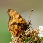 Auch im eigenen Garten kann man einiges entdecken, hilfreich dabei ist unter anderem ein Buddleia Strauch, aber auch andere Pflanzen locken Insekten an. Auf dem Buddleia Strauch schöpft ein Taubenschwänzchen Nektar, auf der Raukenblume labt sich ein Karstweißling, und auf der Minze sitzt eine Totenkopf Schwebefliege. Am Buddleia Strauch war nicht nur einen Taubenschwanz sondern auch einen C-Falter mit eingerollten Rüssel (proboscis). Der Schillerfalter nimmt gerne vom Gestein Mineralien auf, weshalb er nicht nur an Blumen, sondern auch auf der Strasse sitzt!