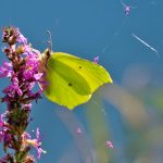 Der Stettener See hat auch im August einiges zu bieten. Vor oder nach dem Schwimmen kann man interessante Insekten beobachten. Der Große Blaupfeil landet gerne auf Menschen-Füße oder tanzt auf Grashalme. Die Tagpfauenauge-Raupen genießen den Brennessel. Dass es langsam herbstlich wird, merkt man am Hintergrund der Zitronenfalter, wo die ersten Spinnfäden die einzelnen Blütenblätter des Blutweiderichs abgefangen haben. Und den “Spinner” kann man ebenfalls beobachten – die Wespenspinne. Die Hauhechel-Bläulinge taumeln sich quicklebendig am Ufer, wobei sie auch Pausen für die Fotografin einlegen.