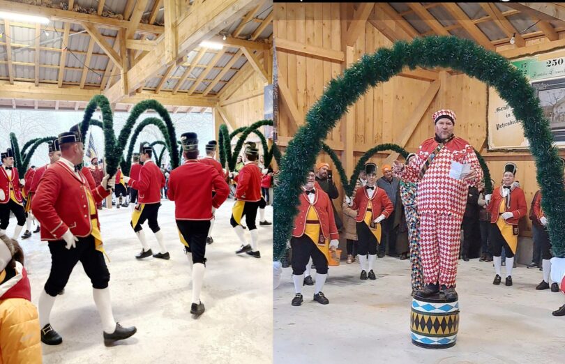 Vorführung auf dem Hof des Landtagsabgeordneten Lausch – Über 150 Gäste ließen sich das Brauchtumspektakel nicht entgehen, als kürzlich die Kolbermoorer Schäfflertanzgruppe samt Blaskapelle „Am Wasen“ dem Landtagsabgeordneten Josef Lausch einen Besuch auf seinem Hof abstatteten.