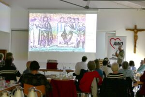 Herbert Weißenfels stellt die Mosaiken mit den frühchristlichen Motiven vor (Foto: Werner Witt)