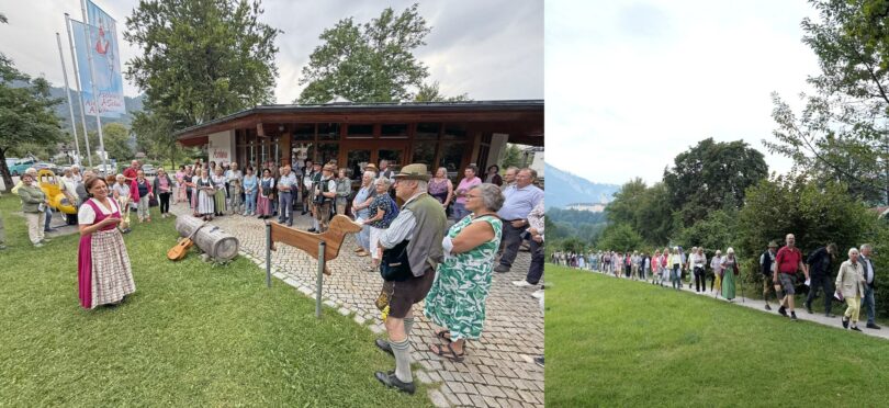 Dabei wurde an den Themenbänken entlang des Weges immer wieder Station gemacht um gemeinsam Lieder zu singen. Den stimmungsvollen Abschluss bildete ein gemeinsames Singen im Aschauer Kurpark – mit dem „Aschauer Lied“. Musikalisch begleitet wurde die Veranstaltung von Lisbeth Genghammer (Gitarre) und Hans Wiesholzer (Akkordeon), die mit viel Feingefühl und musikalischem Können für besondere Momente sorgten. Genghammer hatte auch diesmal wieder eine liebevoll zusammengestellte Auswahl traditioneller Volkslieder vorbereitet – darunter bekannte Stücke wie „Bauernmadl“, „Von da hohen Alm“ oder „De Pinzgara wolltn wallfahrtn geh“.