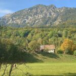 Nach der Brücke geht es geradeaus weiter durch einen Wald, an einer kleinen Brücke an einem Bach biegt man rechts auf dem Weg ab. Zwischen den Waldlichtungen erhalten Wandere einen traumhaften Blick auf Wiesen und Berge, so die Feststellung der beiden Tester. Dieser Weg führt bis zu einem kleinen privaten Häuschen, von wo aus man wieder rechts abbiegt und über den Rundweg zurück zum Anfang kommt. Die kleine Wanderung dauert ca. 25 bis 30 Minuten. Der Weg ist meist eben, jedoch naturbedingt phasenweise mit Laub bedeckt. Aufgrund der steilen Unterführung ist diese Route für Rollstuhlfahrer nur mit Unterstützung geeignet.