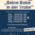 Heuer gibt es insgesamt fünf Theatervorstellungen in Wildenwart, diese sind am Freitag, 7. November, am Samstag, 8. November, am Freitag, 14. November und am Samstag, 15. November jeweils ab 20 Uhr. Neu ist eine weitere Aufführung am Sonntag, 9. November bereits ab 19 Uhr. Der Kartenvorverkauf für alle fünf Veranstaltungen hat bei EDEKA Irob in Prutdorf, Telefon 08051-4108 bereits begonnen. Restkarten sind dann auch noch an den Veranstaltungsabenden eine Stunde vor Vorstellungsbeginn zu bekommen.