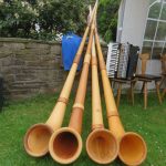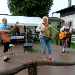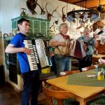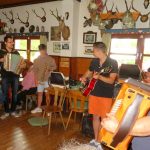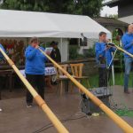 Mit den Herdecker Alphorn-Trio, Andrea Schober, Reinhard Scholz und Tim Lin hatte ich die Ehre, in deren blauem Outfit, dieses Treffen mit anzublasen. Danach gab es nonstop Volksmusik pur. Sowohl auf dem Freigelände als auch in der Almhütte erklang volkstümliche Musik  ohne Pause. Selten hatte ich so viele Harmonikaspieler zusammen erlebt, und das alles Nicht-Bayern. Nahezu alle beherrschten ihre „Steierische“ perfekt. Natürlich waren auch Musiker mit anderen Musikinstrumenten vertreten, wie Gitarre, Akkordeon, Trompete, Bariton, Tuba, Löffel und Alphorn.