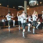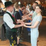 Dazwischen gab es Tanz-Highlights von den Gastgebern, wie z. Bsp. dem Mühlradl-Tanz. Dabei wird das Klappern des Mühlrades dadurch nachgeahmt, dass die Tänzer in jedem Takt abwechselnd mit Sohle und Ferse des rechten bzw. des linken Fußes je zweimal auf den Boden klopfen. Für die musikalische Umrahmung sorgten neben dem Alphornensemble „Alphorn-Bavaria-Berlin“, Dietmar Geßner an der Zither, Rémy Mouton am Akkordeon und DJ Bernhard am Mischpult. Zum stimmungsvollen Ausklang dann ein gemeinsamer Plattler mit den Gästen vom Verein der Bayern in Berlin, der Amboss-Polka. Es war ein gelungenes bayerisches Tanzfest in der Bundeshauptstadt gemäß bayerischer Lebensart, bei netter Unterhaltung, würzigen bayerischem Bier und einer deftigen Brotzeit.