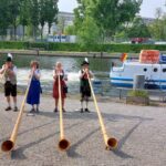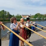 Zu ihrem 8. Gründungsjahr haben die Querplattler nach einer dreijährigen Pandemiepause wieder zu einem Tanzfest eingeladen. Die Location war die „Weltwirtschaft“ im „Haus der Kulturen“, der geschichtsträchtigen Kongresshalle im Tiergarten. Unter weiß-blauem Himmel wurden die Gäste mit alpinen Klängen vom Alphornensemble „Alphorn-Bavaria-Berlin“ am Ufer der Spree empfangen. Danach begrüßten die Moderatoren Claus und Lothar die Gäste auf das herzlichste. Mit dabei, Dirndln und Burschen vom befreundeten „Verein der Bayern in Berlin“. Der Vorstand der Gastgeber, Peter Kraus, ließ sich wegen einer dringenden Dienstreise entschuldigen.