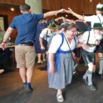 Eröffnet wurde der Tanzreigen von den Querplattlern mit dem Bandltanz, einem traditionellen Volkstanz um einen behelfsmäßigen Maibaum. Die Kunst dabei ist, dass während des Tanzes mit weißen und blauen Bändern schwingend ein weiß-blaues Netz um den Baum geflochten wird. Im weiteren Verlauf des Tanzfestes wurden vom Tanzmeister und Vorplattler Jakob auch die Gäste zum Mitmachen aufgefordert. In mehreren Tanzblöcken mit deutschen und internationalen Volkstänzen, vom Zwiefachen bis zum Rheinländer, hatten alle Tanzbegeisterten viel Spaß und eine Mordsgaudi.
