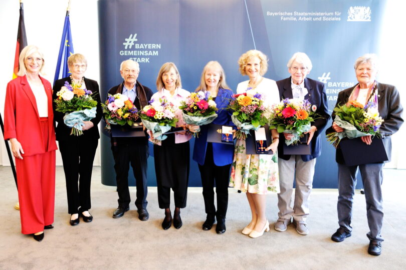 Bericht und Foto: Bayerns Sozialministerin Ulrike Scharf zusammen mit den Geehrten – StMAS /Schäffler / Nötel