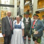 Beeindruckend und zutiefst nachdenklich stimmend waren die Besuche an der Gedenkstätte Berliner Mauer an der Bernauer Straße, im Haus der Wannsee-Konferenz sowie in der Erlebnisausstellung „Story of Berlin“ im Ku-Damm-Karree. Bei einem Vortrag durch Ersten Kriminalhauptkommissar Ingo Sorgatz im Bundesministerium des Innern, für Bau und Heimat, dem seit einigen Monaten Horst Seehofer aus Bayern voransteht, und bei einem Besuch des Reichstags waren die Trachtlerinnen und Trachtler hautnah mit der pulsierenden Politik in Berührung. Ausführlich und intensiv war ein Dialog, den die 46 Personen umfassende Trachtlerdelegation im Bundestag führte, mit dem Vorsitzenden der CSU-Landesgruppe im Deutschen Bundestag, Alexander Dobrindt und mit seinem Bundestagskollegen und ehemaligen Bürgermeister von Denklingen Michael Kießling aus Landsberg am Lech. Die neue Datenschutzverordnung, der Sonntags-Schutz, das Jugendschutz-Gesetz, das Weiterbildungs-Gesetz und die Ehrenamts-Pauschale waren einige der Themen, die dabei angesprochen wurden. Der Besuch im Bundestag und anschließend im Biergarten des Augustiner-Zollpackhofs nahe dem Bundeskanzleramt bot noch weitere Gelegenheiten zu persönlichen Gesprächen, unter anderem mit Entwicklungsminister Gerd Müller, mit den Abgeordneten Florian Hahn (München-Land), Florian Ossner (Landkreis Vilsbiburg mit dem Trachtenkulturzentrum Holzhausen), Peter Ramsauer (Traunstein und Berchtesgadener Land), Artur Auernhammer (Landkreis Weißenburg-Gunzenhausen) und Alexander Radwan aus Miesbach. Auch bei einem Besuch in der Bayerischen Landesvertretung kam es zu einem regen Meinungs- und Informationsaustausch zwischen den in Berlin und Bayern tätigen Leuten. Die Organisation der Reise erfolgte auf der Seite des Bayerischen Trachtenverbandes von stellvertretendem Landesvorsitzenden Erich Tahedl mit Unterstützung durch Landesschriftführerin Hildegard Hoffmann zusammen mit dem Büro von MdB Alexander Dobrindt. Die Betreuung der mit einem Bus der Firma Marx aus Fridolfing angereisten Trachtler in Berlin bei den Führungen lag in den Händen von Stadtführer Swen Götz. Landesvorsitzender Max Bertl zeigte sich ob des Gesehenen und Gehörten sehr zufrieden und er sagte: „Um Berlin, die deutsche Geschichte und die Politik insgesamt besser zu verstehen, kann ich nur eine solche Reise mit Besuchen der Gedenkstätten und Museen empfehlen“.