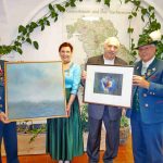 „Alle Werke der drei Künstler waren bereits in bedeutenden Ausstellungen und deren Wert möge im Falle einer Veräußerung oder Versteigerung die bayerische Trachtenbewegung fördern“ – mit diesen Worten übergab Unternehmer, Investor und Kunstsammler William Hetzler seine Schenkung an den Landesvorsitzenden Günter Frey und an den Ehrenvorsitzenden Max Bertl vom Bayerischen Trachtenverband. Diese bedankten sich für die großzügige Spende und bezeichneten diese als weiteren Beweis und Beitrag zur Trachtler-Freundschaft mit dem Gauverband Nordamerika. William Hetzler gehört nämlich als Ehrenmitglied dem Trachtenverein Schlierachtaler Stamm in New York an. Ebenfalls mit dabei bei der Schenkung in Holzhausen war dessen weiteres Mitglied Bob Hugel. Dieser überbrachte als Beisitzer vom Gauverband Nordamerika die besten Grüßen von dessen 1. Gauvorstand Tom Vogt. Dieser ließ die herzlichsten Trachtengrüße aus Kanada und aus den USA übermitteln, dazu hieß es: „Es ist schön, nach mehr als einem Jahr des Zögerns über Covid-19 wieder etwas Persönliches zu machen. Es ist das Zusammenkommen, das unsere Freundschaft stärkt“. Zugleich gratulierte Tom Vogt dem neuen Landesvorsitzenden Günter Frey und bat um weiterhin gute Zusammenarbeit. Günter Frey bedankte sich bei den Trachtenfreunden von Nordamerika mit einem signierten Buch „Trachtenlandschaft“ Bayern.
