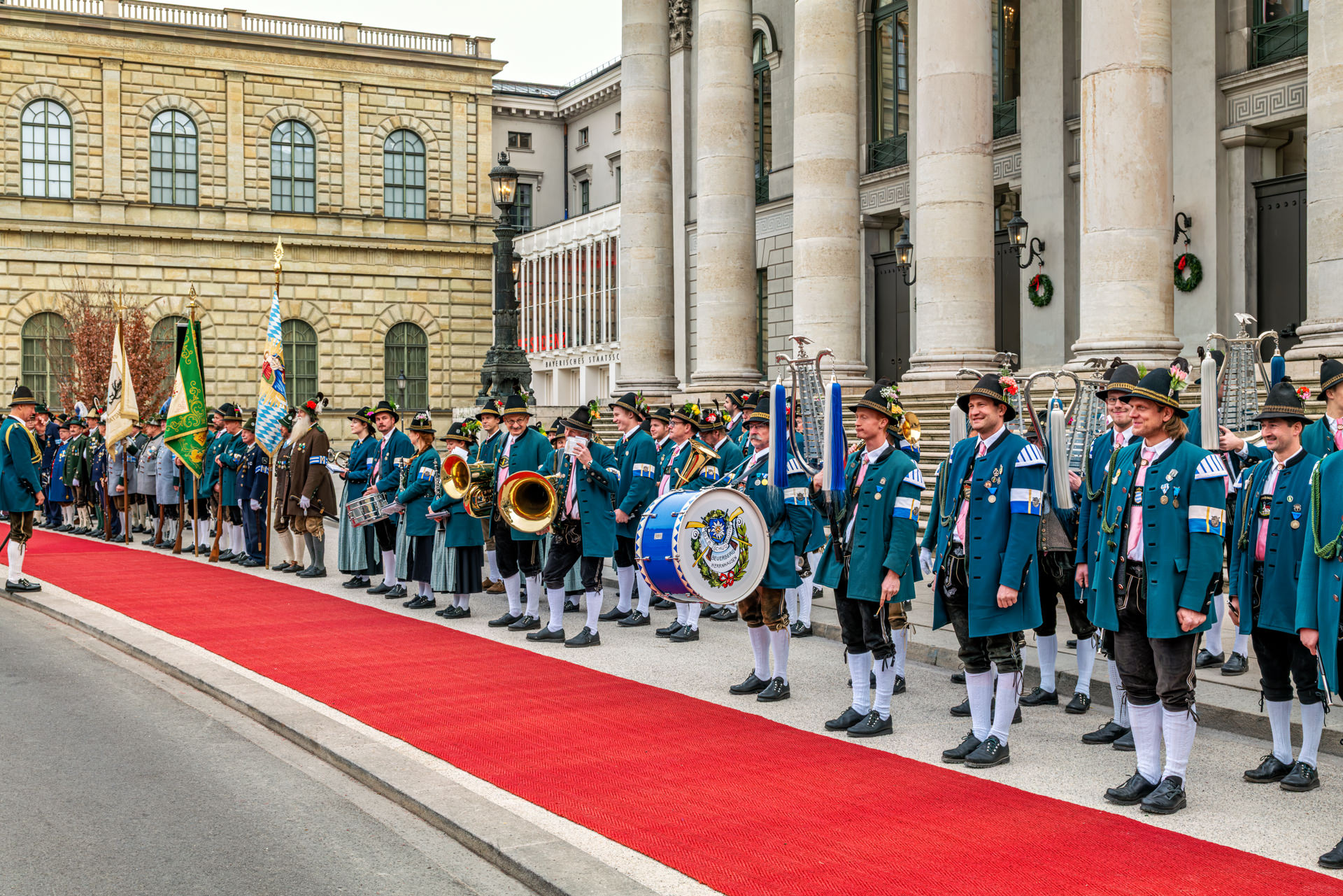 Roter Teppich für Schwedens Königin Silvia: Empfang mit Gebirgsschützen und bayerischer Tracht in München