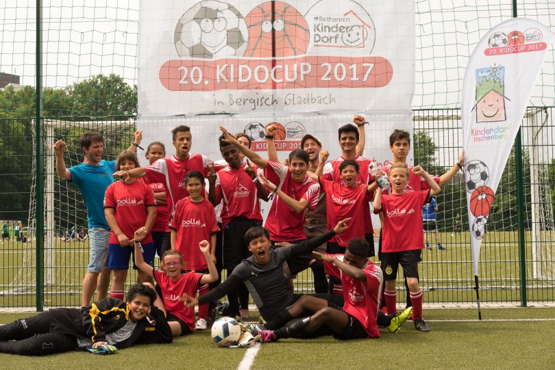 Kinder und Jugendlichen aus 18 Kinderdörfern aus ganz Deutschland folgten der Einladung des Bethanien Kinderdorfs in Refrath und nahmen an der 20. Ausgabe des sogenannten Kido-Cups teil. Insgesamt 350 Mädchen und Jungen kämpften bei hervorragenden äußeren Bedingungen um Tore und Punkte in den Fußball- und Streetball-Turnieren U14 und U19. Die Fußballmannschaft der unter 19-Jährigen aus dem Caritas Kinderdorf Irschenberg konnte dabei eines der vier großen Turniere für sich entscheiden. Thomas Gratzl, Sozialpädagoge über das Auftreten seines Teams: „Die sind beim Kinderdorf-Cup wunderbar als Mannschaft aufgetreten und haben selbst körperlich überlegene Teams spielerisch besiegt. Und das obwohl unser Torwart ab dem vorletzten Spiel mit kaputtem Zeigefinger gespielt hat. Dieser wurde am Sonntag vor der Heimreise im Krankenhaus noch behandelt und geschient.“ Natürlich ging es bei der hervorragend organisierten Sportveranstaltung um Tore und Körbe. Fast wichtiger ist den Verantwortlichen das Zusammentreffen ihrer Schützlinge mit anderen Kinderdorfkindern. Denn dort sehen sie, dass es außer dem eigenen Kinderdorf noch viele weitere in Deutschland gibt, in denen Kinder und Jugendliche mit ähnlichen Schicksalen ein Zuhause gefunden habe. So ist es kein Wunder, dass auch in diesem Jahr offenkundig die Freude am gemeinsamen Erlebnis im Vordergrund stand.