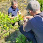 Erst im Frühjahr hatte er in diesem Abschnitt, nahe der Kläranlage, auf rund 300 Metern Maßnahmen zur Revitalisierung des Gewässers umgesetzt. Wo die Jugendlichen jetzt dem geschlängelten Bachlauf folgen, war der Bach noch vor Kurzem schnurgerade angelegt. Wo Querbauwerke Fischen den Weg versperrten, herrscht heute Durchgängigkeit. Fische sollen wandern, sich neue Lebensräume erschließen können. Sie brauchen Laichplätze, Schatten und natürlich Schutz vor Fressfeinden, erklärt der Flussmeister.
