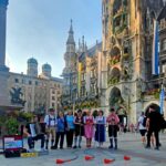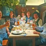 Nach zwei erlebnisreichen Tagen auf der Wiesn sorgte das „Alphornensemble des Vereins der Bayern in Berlin“ für ein Highlight auf dem Marienplatz. Mit Schlauch-Alphörnern aus dem Koffer des 1. Vorsitzenden ließen die vier Musiker alpine Klänge vor dem Münchner Rathaus erklingen. Das Publikum staunte nicht schlecht darüber, was man aus einem Wasserschlauch für Töne rausbekommen kann. Ein gemeinsames Musikstück mit dem Straßenmusiker Ivan Hajek rundete das Konzert ab. Am letzten Tag des Oktoberfestbesuches machten die Berliner Trachtler einen Abstecher nach Tegernsee, in die herrlichen bayerische Voralpenlandschaft. Dort ist die Brauerei zuhause, die für den Bayernverein in Berlin das Bier liefert. Wieder zurück in München, zum Abschluss der erlebnisreichen Wiesen-Tour noch ein gemütlicher Abend im ältesten Wirtshaus von München, im „Alter Wirt Mosach“.