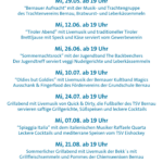Sieben Bernauer Vereine machen in diesem Jahr mit und so heißt es auch in diesem Sommer an sieben Terminen „Zamkemma im grünen Ortskern“ bei Livemusik und leckeren Schmankerln. Jeden zweiten Mittwoch von 29. Mai bis 21. August 2024 wird geratscht, geschlemmt und das vielfältige Unterhaltungsprogramm der Vereine genossen. „Ein großer Dank gilt allen Vereinen, die sich im Rahmen der Eventreihe engagieren“, so Abel. Mit dabei sind in diesem Jahr der Bernauer Trachtenverein, die Gewerbeverein, der Jugendtreff, der Förderverein der Grundschule, der TSV Bernau mit den Abteilungen Fußball und Eishockey sowie die Chiemseenixen.